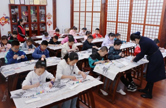 在宋朝时期,有了以“风筝”来称呼纸鸢的习惯,此时,风筝已成为妇孺普遍参与的休闲游戏。 宋人也笔记中记录了“竞纵纸鸢,以相勾引,相牵剪截,以线绝者为负”的“小技”这样的语句,宋朝的诗人们也喜欢用风筝寄托情况,表达自己的远大志向。巧手制作环节,文文姐姐为大家准备了风筝、多色颜料等备品,共同体验绘制纸鸢。