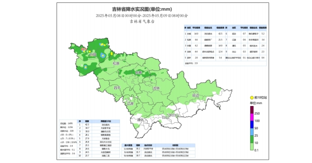 预计9日白天到夜间,白山南部有小到中雨,吉林东部、通化、白山北部、延边、长白山保护开发区有小雨,长春东部和北部、吉林西部和北部部分地方有阵雨。