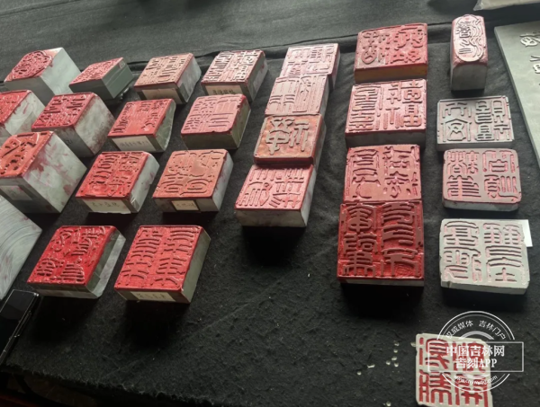 本届书博会上,彭祖述艺术馆精心筹备了三项特色活动。最具创意的当属彭祖述松花石书法篆刻T恤快闪互动体验。艺术馆特别制作了多款松花玉石印章,既有“天行健,君子以自强不息”等彭老传统篆刻作品,也有“欢喜”“长乐”等深受年轻人喜爱的时尚词汇,均取材于彭老书法真迹。这一创新设计不仅让观众收获独特的文化纪念品,更将传统文化融入日常穿着,让艺术真正走进生活。