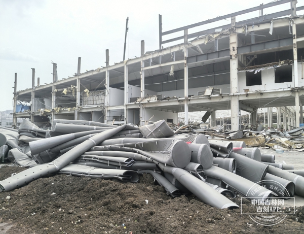 5月13日,中国吉林网记者在现场看到,长春会展中心园区内机械轰鸣,施工车辆往来穿梭,工人们正有条不紊地忙碌着。6、7、8号展馆已褪去外衣,仅剩钢结构骨架。