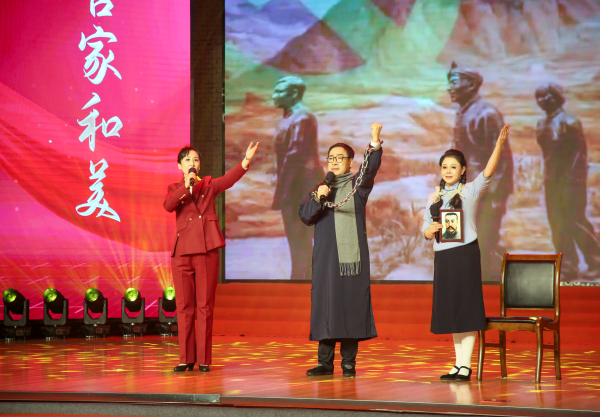 活动在视频《爱的故事》中拉开序幕。古风配乐朗诵《于氏家训》《满江红》,字里行间反映出古代先贤修身立德、爱国为民、节俭守信的优良风尚。舞台情景剧《播火者》以隔空对话的形式深情演绎了李大钊行刑前和女儿李星华的真挚对白,展现了李大钊身上坚定的爱国主义精神与勇于献身的革命精神。朗诵《家书铭壮志、笔翰铸忠魂》,通过讲述罗荣桓、陈觉、李静安、赵一曼4人的红色家书,一起回忆革命先烈的家国情怀。故事分享《海棠依旧》讲述了周恩来与邓颖超革命伉俪的感人故事,体现了中国共产党人的精神底色和红色家风。