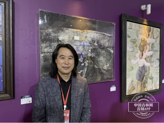 长春师范大学美术学院院长曲鸽的作品《山魂》也在此次展览中亮相。谈及创作初衷,他说道:“这幅画最初叫《石头努力开花的时候》,灵感源自策兰的诗句,后来改为《山魂》。在油画创作上,俄罗斯画家坚守着本民族的艺术特色,作品风格写实;而中国画家则在不断探索创新,大家的风格各异,材料运用也更加多元。我们画长白山,注重展现它的神韵与意境,这和俄罗斯画家的表现手法截然不同,但正是这种差异,让这场展览更具魅力。”