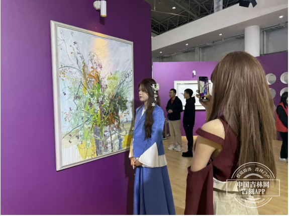 在展览期间,长春师范大学研究生一年级美术与书法油画专业学生曲典跟着中国吉林网的记者一同做了一场大直播。直播中,曲典眼中闪烁着兴奋与热爱的光芒,她穿梭在一幅幅画作之间,用生动而专业的语言为屏幕前的观众讲解着每一幅作品的独特之处,让观众也仿佛身临其境,感受到了那份艺术的震撼。这场直播,让更多无法亲临现场的人,也能一同领略这场中俄艺术碰撞的魅力。