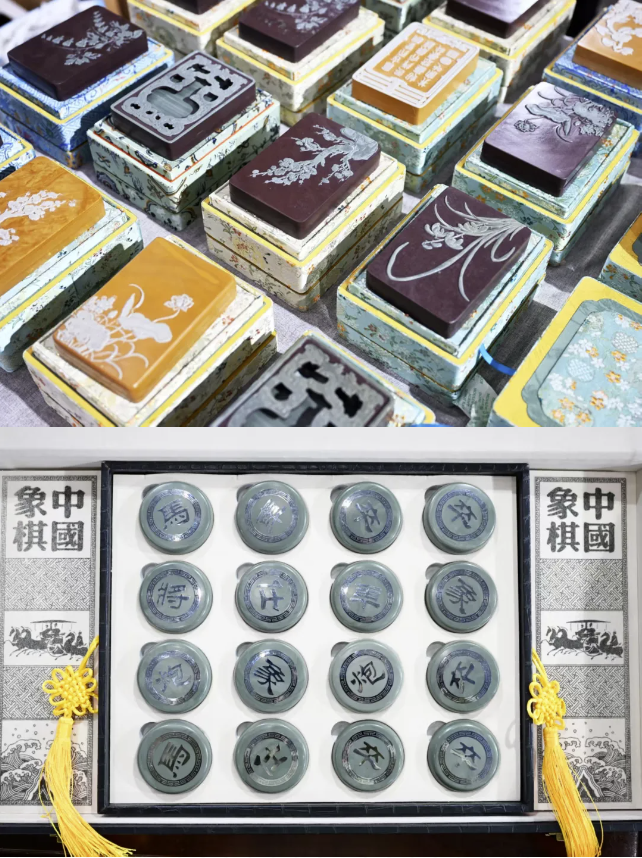 1000余件精美作品,涵盖松花石奇石、文创产品、松花砚、文房四宝、茶具产品以及非遗大师作品等多个品类。