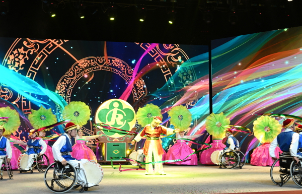艺术汇演在歌伴舞《我在吉林你在哪儿》中拉开帷幕,来自全省各市州的残疾人代表和长春大学的志愿者们用热情的歌声和昂扬的舞步,展现了对美好生活的热爱,演绎了吉山吉水、“五色吉林”的发展新画卷。整场演出共有近300名残疾人、残疾人工作者和志愿者参与,涵盖歌曲、舞蹈、朗诵、乐器合奏等12个节目。歌声慷慨激昂、旋律悠扬婉转、演绎饱含深情、舞姿热情洋溢……大家用形式多样、亮点纷呈的表演为现场观众呈现了一场高水准的文化盛宴,赢得了阵阵掌声。