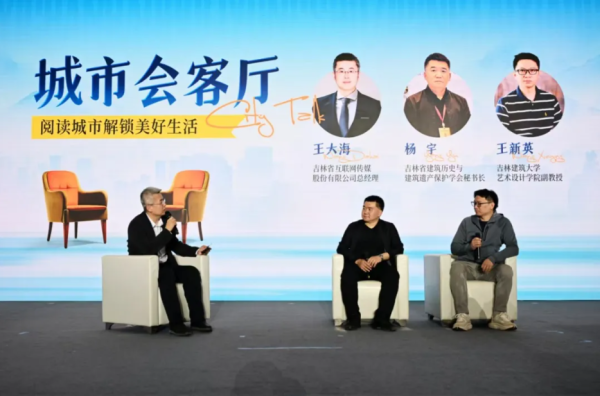 在“城市会客厅 City Talk”中,吉林省互联网传媒股份有限公司总经理王大海与吉林省建筑历史与建筑遗产保护学会秘书长杨宇、吉林建筑大学艺术设计学院副教授王新英展开了一场深度对话,他们一同阅读城市,分享对城市文化的独特见解,解锁美好生活的新内涵,为现场观众带来了一场文化的思想盛宴。