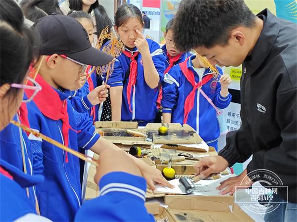 5月19日,第二届东北图书交易博览会收官之日,吉大慧谷学校筑梦吉网小记者团走进非遗展区,参与"遇见吉林非遗"活动。通过四大主题区域的沉浸式互动,青少年与吉林非遗深度对话,活动现场吸引众多市民驻足围观。