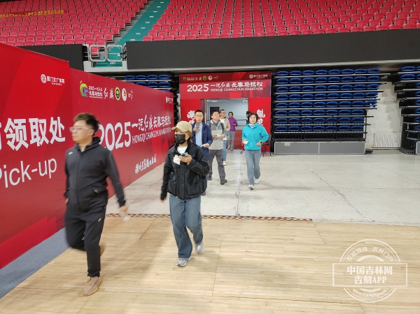 中国吉林网记者在现场看到,领取现场不仅设置了路引等标志标识,还在领取参赛物资场馆门口设有醒目的领取流程,参赛选手进入只需凭借二代身份证原件并在设备前识别完成人脸信息录入后,便可获取领物小票,小票上标记了参赛服相应尺码以及选手号码布、物资等具体领取窗口信息。
