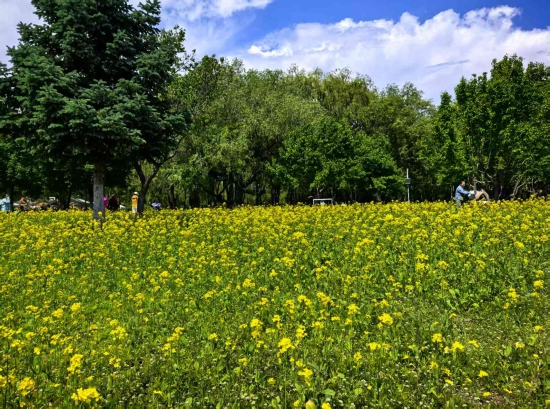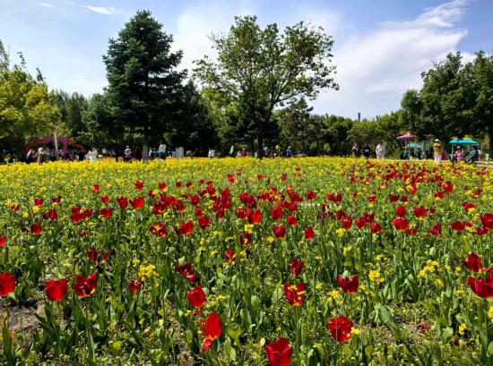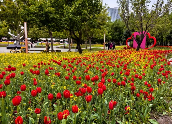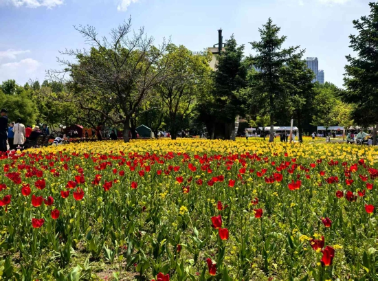 去年10月末至11月初,长春公园埋下“春日盲盒”——郁金香种球与油菜花种子。油菜花与郁金香完美“牵手”,规则又灵动地交叉排列,金黄的油菜与各色的郁金香彼此依偎。