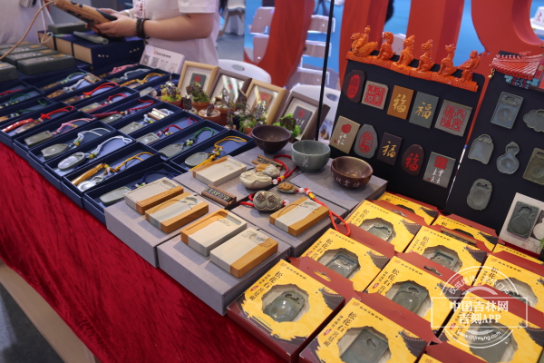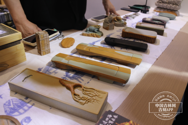 在众多展品中,一方人参砚吸引了众多观众的目光。这方砚台造型古朴典雅,砚身雕刻着精美的人参图案,线条流畅,栩栩如生,雕刻细节让人误以为将人参放置于石砚上。还有一些文创工艺品,巧妙地将现代设计理念与传统松花石砚制作工艺相结合,设计出了小巧玲珑的松花石砚摆件、实用美观的松花石砚冰箱贴等,既保留了松花石砚的文化内涵,又满足了现代人的审美和使用需求,深受年轻观众的喜爱。