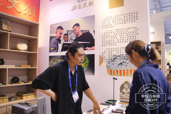 一位来自广东的观众在参观完松花石砚展品后,不禁赞叹道:“以前只是听说过松花石砚,这次在文博会现场亲眼看到,真的被它的美震撼到了。每一方砚台都像是一件艺术品,蕴含着深厚的文化底蕴,真的太了不起了!”许多观众还在展位前与工作人员交流,了解松花石砚的制作工艺、文化历史等相关知识,工作人员也热情地为大家一一解答,并现场讲解了松花石砚的研磨过程,让观众更了解这份独属于吉林的浪漫。