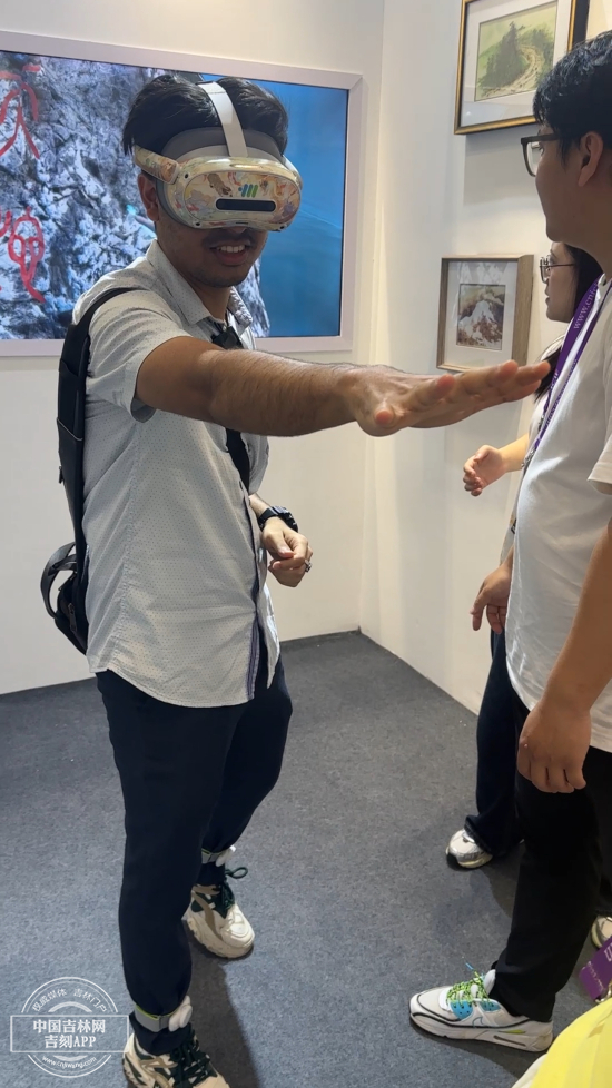 在活动现场,有不少来自外国的学生和游客来到吉林展厅,他们被新奇的XR体验深深吸引并亲身体验。