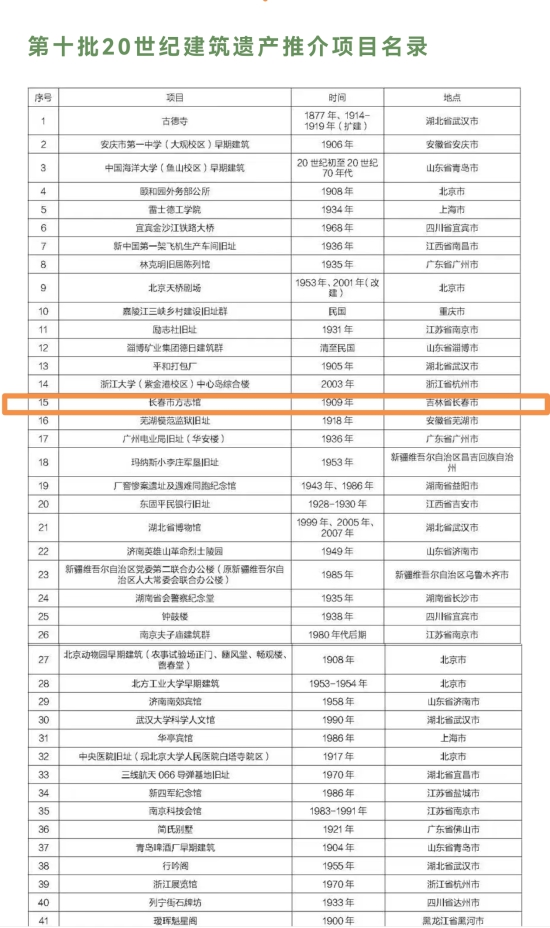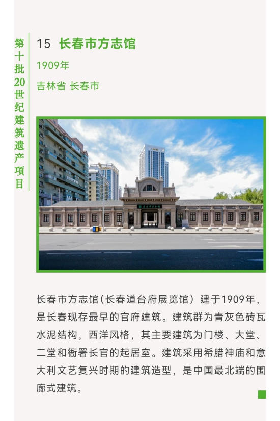 在全国建筑、文博专家的共同见证下,共推介了100个第十批20世纪建筑遗产项目。其中,吉林省长春市方志馆被列入推介的项目之一。