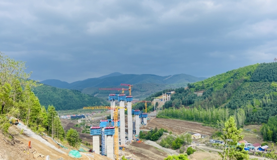 椴木松沟8号大桥桥梁全长795.7米,跨径组合为16*49.5m钢混组合梁,等截面薄壁空心墩13个,变截面薄壁空心墩11个,最高墩85.7米。