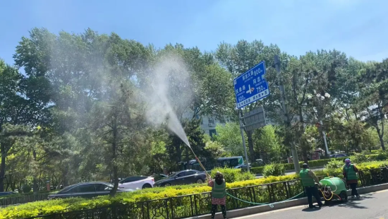 植保人员对自由大路、景阳大路等路段开展病虫害防治工作,使用高压喷雾设备对金叶榆、京桃等乔木喷洒环保药剂,并悬挂诱捕器,重点防控蚜虫、红蜘蛛及美国白蛾等常见病虫害。同时,同步实施枯枝修剪、树冠疏密调整等作业,累计已完成3万余株乔木养护。针对松树、云杉等易感病树种,工作人员采取根部施药与叶面喷淋相结合的方式,全方位阻断病害传播链,确保树木茁壮成长,为城市绿化景观筑牢健康防线。