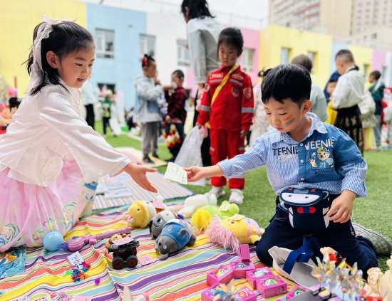 为迎接“六一”国际儿童节,5月27日,省直机关第一幼儿园以“环保共享·童趣当家”为主题,开展“小市集里的大成长”特色活动,让幼儿在沉浸式体验中感受生活教育的魅力。 活动现场,孩子们摇身一变,成为“小掌柜”和“小顾客”。他们将闲置的玩具、绘本精心布置成创意摊位,用稚嫩的吆喝招揽生意,在讨价还价间初步了解货币交易知识,在交流互动中提升语言表达与社交能力。