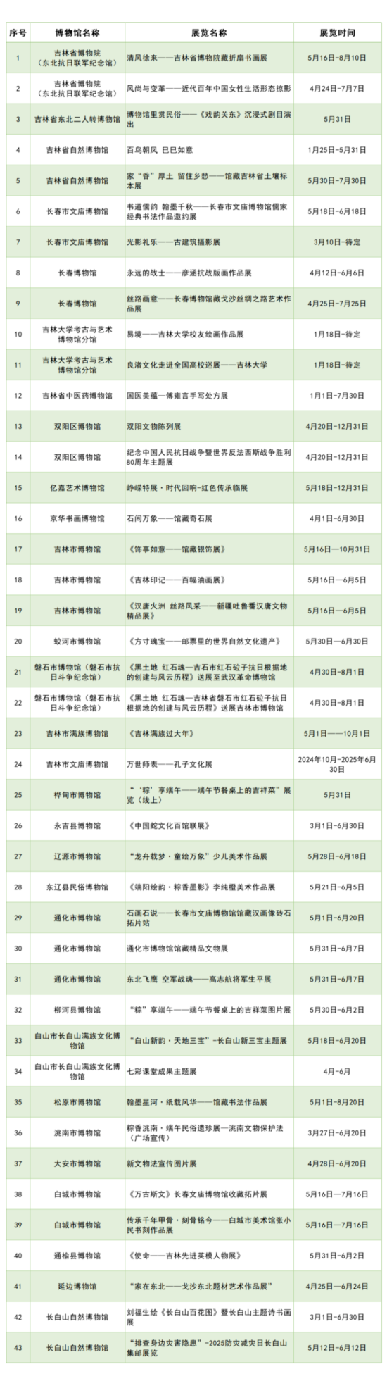 2025年端午假期将至,吉林省各大博物馆精心策划了一系列特色展览和精彩活动,同时部分博物馆还延长了闭馆时间,为公众提供了一个深入了解传统文化、感受民俗魅力的绝佳机会。