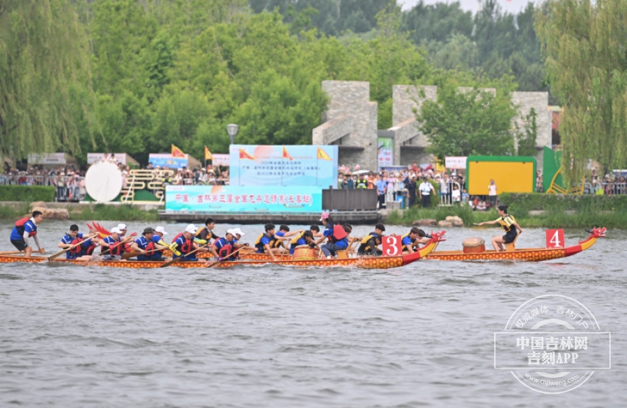 当长春主赛场激战正酣,吉林市临江游园的松花江水域与大安嫩江湾旅游区的玉龙湖浪漫沙滩,也同步擂响战鼓。三地共舞,将龙舟竞渡的热情与端午的祝福洒遍吉林大地。