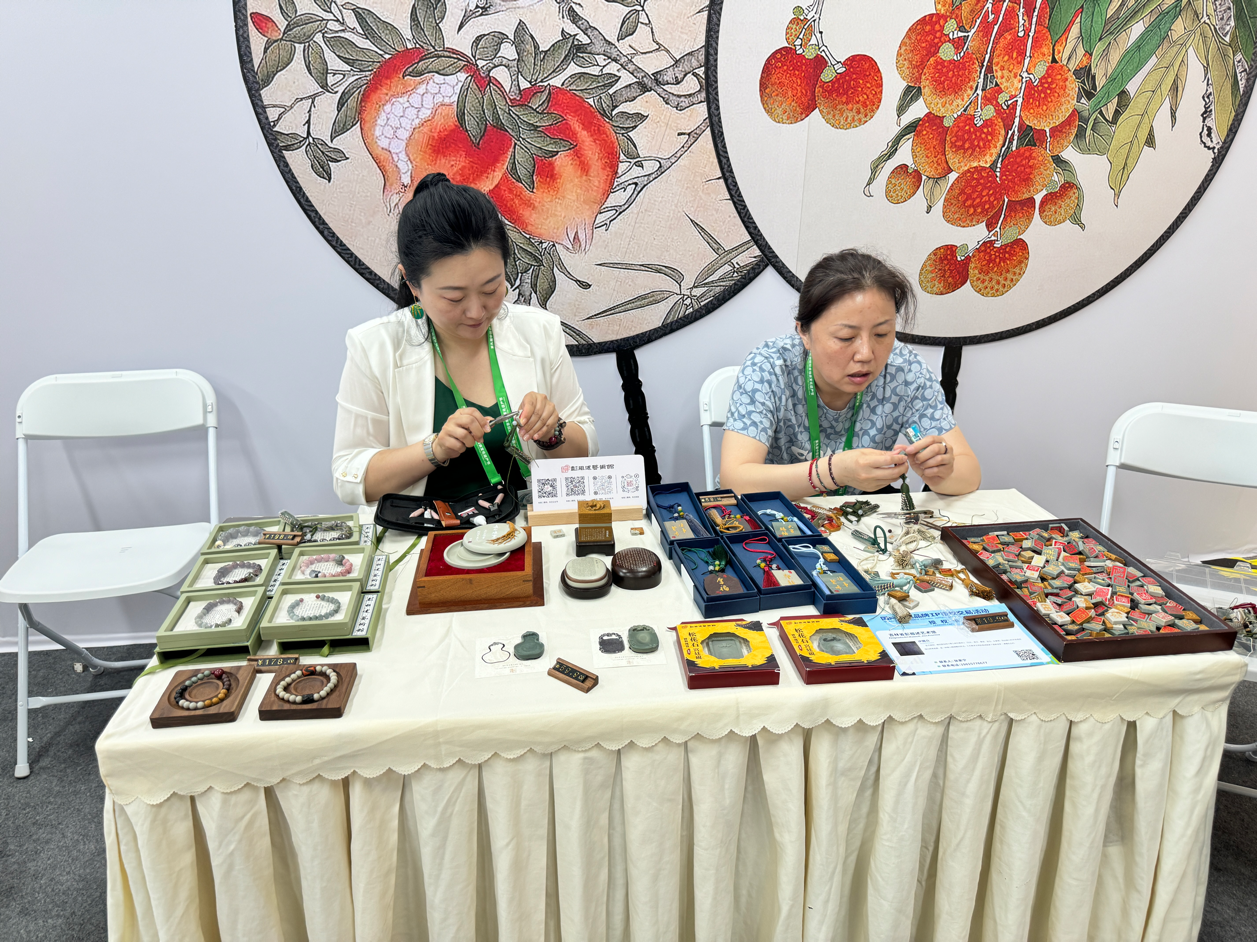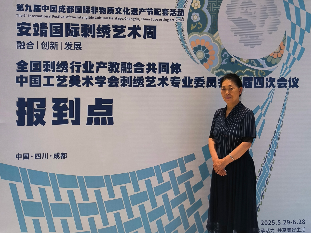 传承人携枕顶绣品参与非遗节配套活动,现场演示独门技艺并出席全国刺绣行业相关会议,展示吉林独特刺绣技法。