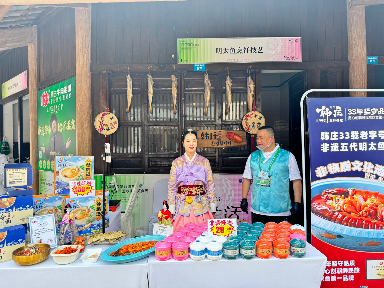 韩庄品牌带来的朝鲜族特色冷面、参鸡汤、人参汤、手撕明太鱼等一系列风味美食,现场免费试吃酸甜辣爽的手撕明太鱼,体验舌尖上的延边风情。
