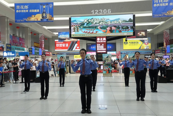 活动在车站职工演唱的歌曲《幸福家乡》中拉开序幕,动感的节奏瞬间点燃现场氛围。随后,舞蹈《天天向上》、歌曲《火红的萨日朗》依次上演,表演者用深情的歌声和优美的舞姿传递着对旅客的美好祝愿。舞台上,铁路职工用才艺展现行业风采;舞台下,旅客们纷纷举起手机记录精彩瞬间,掌声与欢笑声此起彼伏。