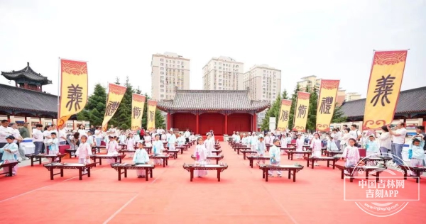在长春市文庙博物馆内,古乐悠扬,50余名身着汉服的萌娃在家长的陪同下,共同参与了一场以“启智润心 助梦起航”为主题的公益启蒙礼。