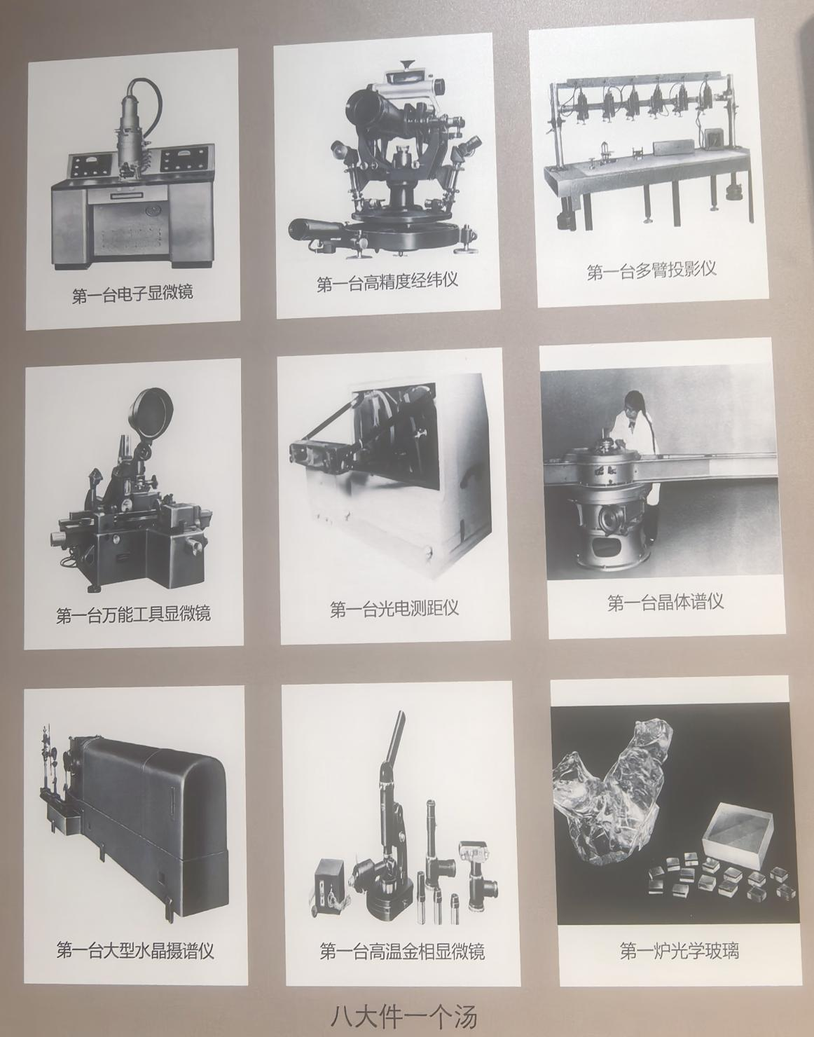 随后六年,相继研制出的“八大件一个汤”(我国第一台电子显微镜、高温金相显微镜、多臂投影仪、大型光谱仪、万能工具显微镜、晶体谱仪、高精度经纬仪、光电测距仪),填补了我国在光学仪器发展中的空白,为研制、开发大型精密光学设备奠定了可靠的技术基础。