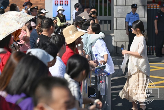 家长与考生们击掌、拥抱,传递着力量与信心 。