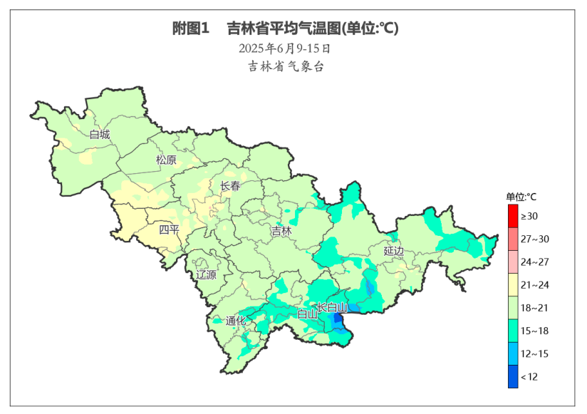 其中,白城和松原分别比常年低0.9℃和0.6℃,长春与常年持平,其他地区较常年高0.2~2.7℃。