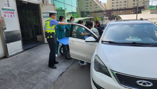 6月13日9时许,吉林省公安厅交通管理总队高速公路延边支队民警正在延吉西站口执行执勤任务。一辆白色轿车缓缓驶来,在执勤点旁停下,驾驶员神情焦急地向民警求助:“警察同志,能不能带我们去延边医院?要是警车不方便,开我们的车也行!”