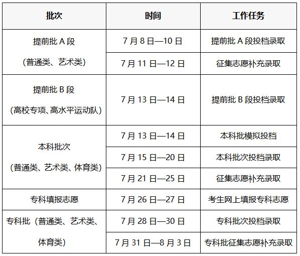 我省2025年普通高考各批次录取时间已初步确定,具体安排如下——