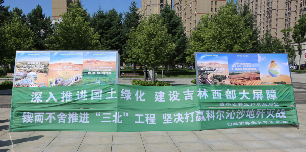 在宣传活动现场,通过悬挂宣传标语、摆放宣传板、发放宣传材料和主题宣传品、专业人员现场讲解等方式,广泛深入地宣传荒漠化防治的法律法规以及吉林省荒漠化防治成果,倡导群众积极参与到荒漠化防治的行动中来,形成全社会共同关注和保护生态的良好氛围。