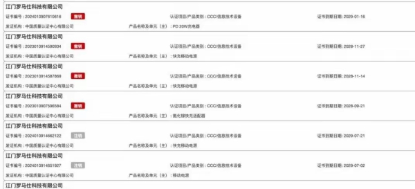 6月20日,全国认证认可信息公共服务平台显示,罗马仕、安克创新、倍思科技以及绿联科技等公司多款移动电源产品的3C认证证书被暂停。行业上游企业,安普瑞斯(无锡)有限公司所有3C认证证书被暂停或撤销。