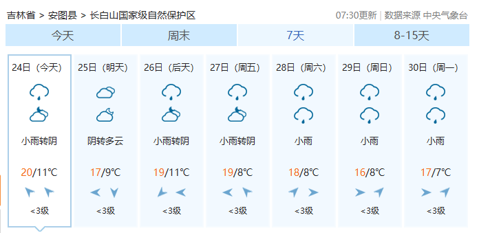 看看,这温度,如果你现在收拾行装来长白山避暑,是不是还需要带上一件外套?
