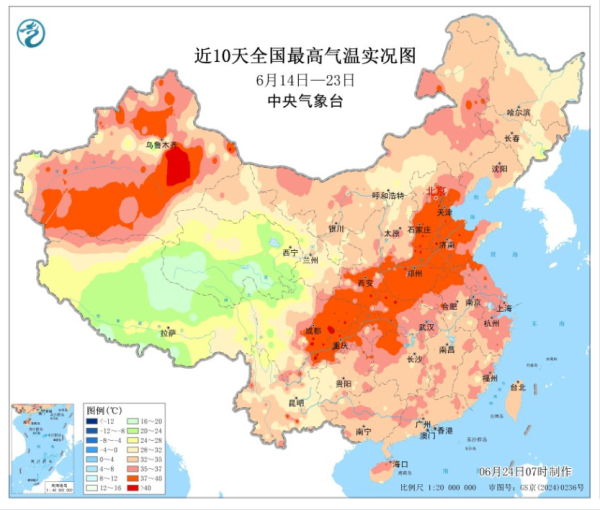 中央气象台6月24日6时也继续发布高温黄色预警。