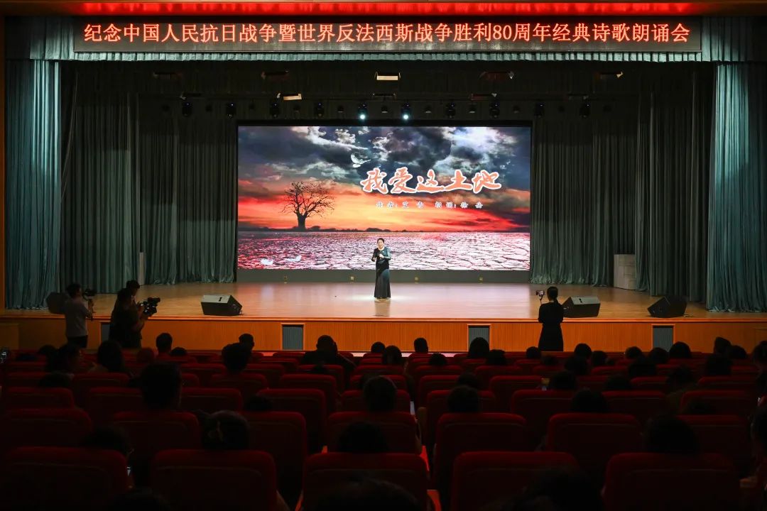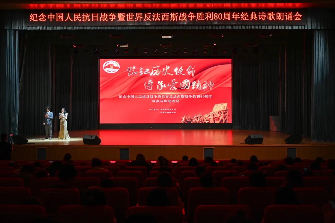 “纪念中国人民抗日战争暨世界反法西斯战争胜利80周年经典诗歌朗诵会”日前在吉林外国语大学世桥大厦报告厅举行。