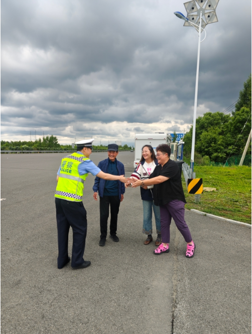 民警立即行动,一边安抚焦急的家属,一边制定最优救援路线。因事发路段无信号,无法联系被困人员,为尽快找到被困车辆,民警果断决定从寒葱岭服务区沿着来时路线进行搜寻。最终在鹤大高速668公里附近找到受困车辆,成功化解危机。王女士和亲属激动不已,连连致谢。