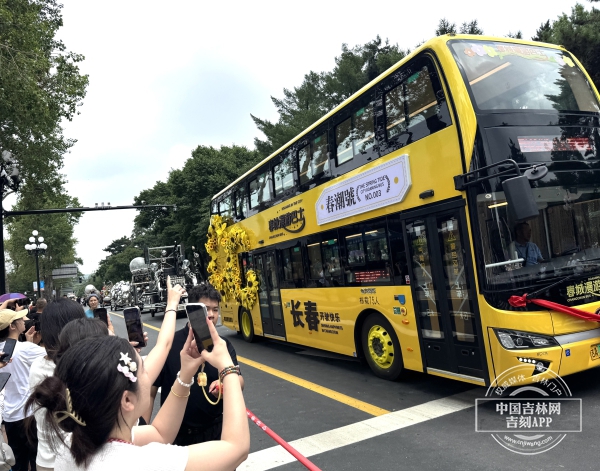 这些双层公交车改造的主题花车,巧妙融汇一汽红旗、中车长客、长光卫星等城市标志性元素,车内配备餐点饮料和文创产品展示,让城市文化可观可感。