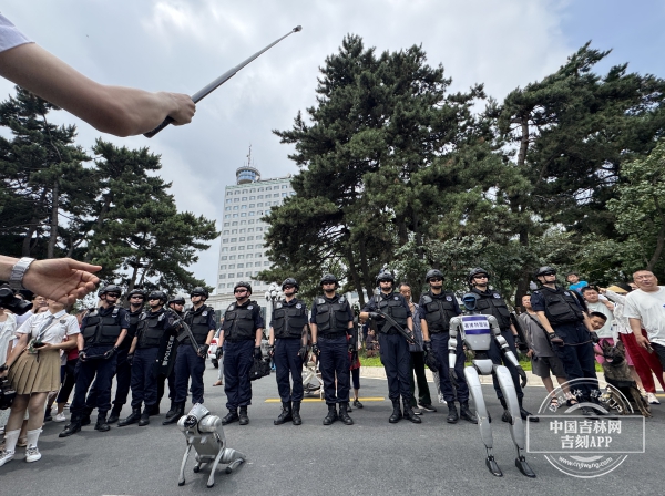 特警、智能机器人与机器狗组成的赛博警卫队为活动增添了未来科技感。