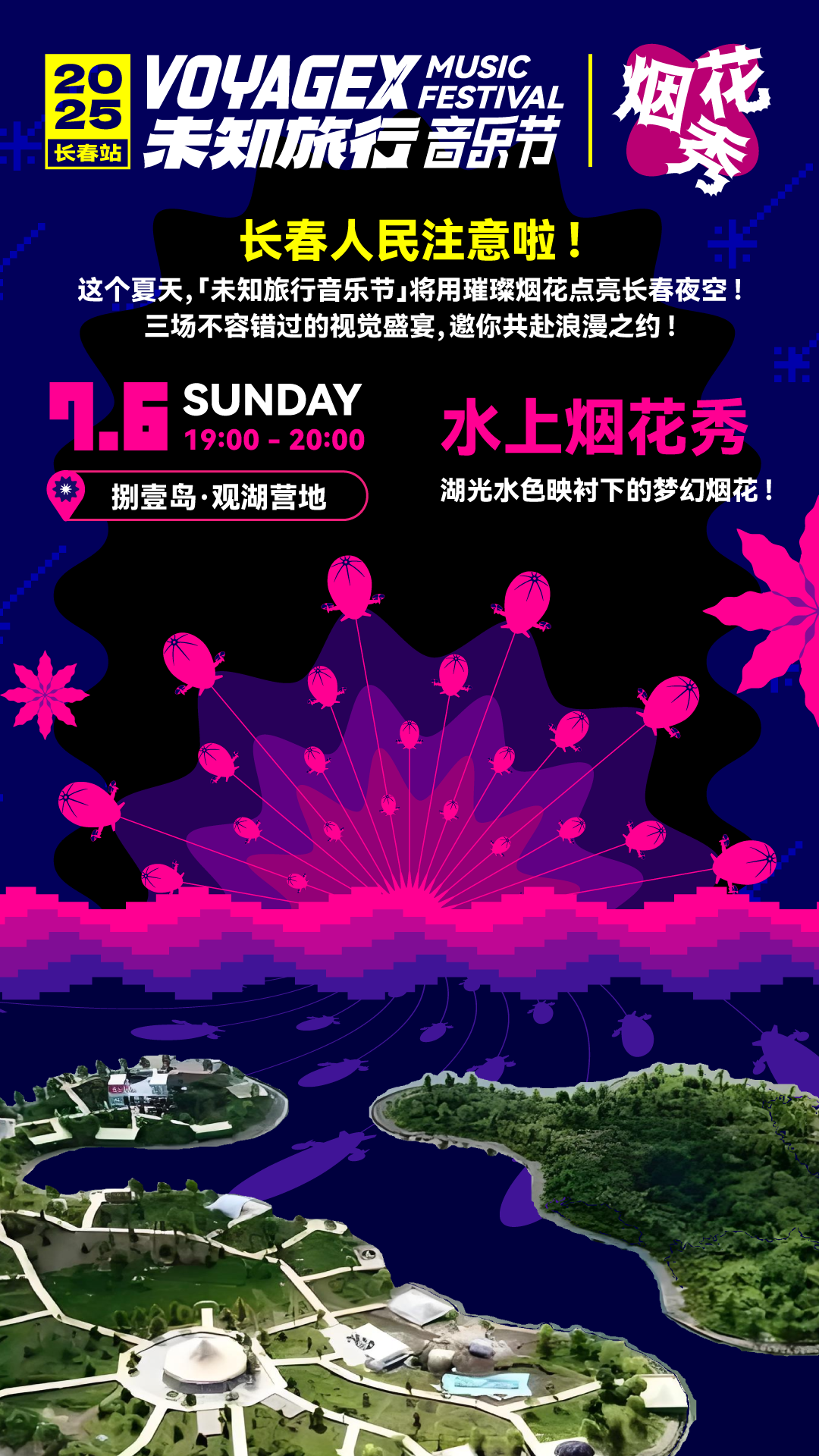 7月6日19:00 捌壹岛冰岛部落(锦湖大路南) “湖光幻梦”水上烟花秀。