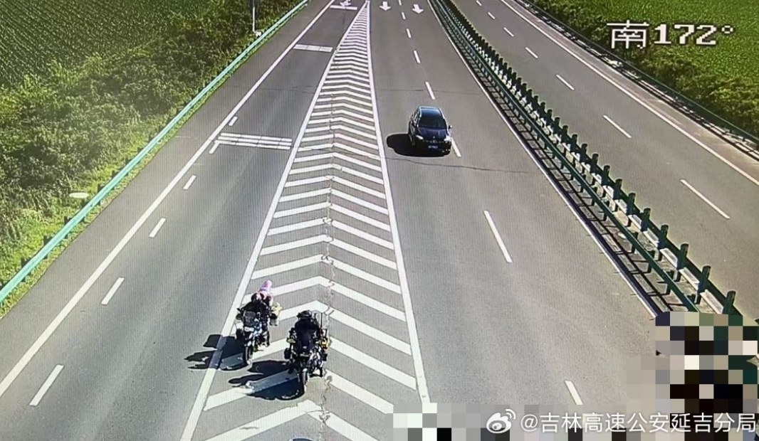 近日,吉林省公安厅交通管理总队高速公路延边支队巡逻三大队民警通过视频巡查时,发现在延三高速13公里处有两辆普通二轮摩托车停在导流线上。民警立即在延吉西收费站进行拦截。