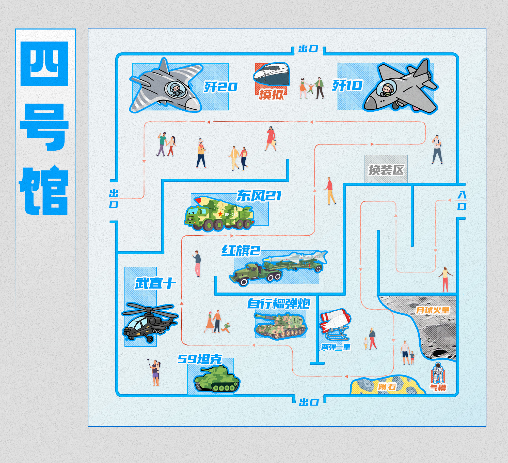 “蓝天利刃”区就像一座航空博物馆,从空军装备发展历程到新中国航空工业的改革与调整再到《中国飞机谱系图》,展板上详细的图片和文字见证了人民空军从弱小走向强大的光辉历程。登上高高的悬梯,坐进歼-10、歼-20战斗机模型的驾驶室,从驾驶员视角望去,仿佛下一秒就能驾机冲上云霄,更是感受到人民空军保家卫国的坚定决心和中国航天力量的磅礴力量。