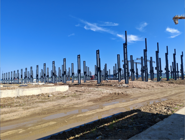 七月的敦化骄阳似火,中国供销中央厨房仓储物流项目现场一片火热:数百名工人穿梭忙碌,大型设备有序作业,轰鸣声与吆喝声交织成活力建设曲。