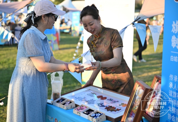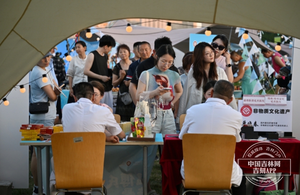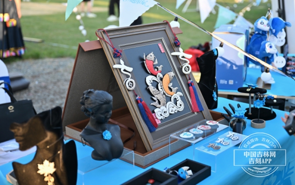 这个傍晚的青怡坊云CAMP城市营地热闹非凡,开幕式开始前,阳光还没有退去,这里已经非常热闹。开幕式主会场北侧,吉林省非遗市集汇聚了全省20余项非遗代表性项目,市民们穿梭在非遗市集中间,看看这个,问问那个。这不,查干湖鱼皮制作技艺的展位前就来了不少人。查干湖鱼皮制作技艺省级代表性传承人徐毳告诉中国吉林网记者,此次展位上带来的就是查干湖鱼皮制作技艺的作品,有传统的鱼皮版画,人鱼公主系列饰品,还有小钥匙链类的和吉祥如意系列的胸针、冰箱贴等,这些产品都是新开发的,特意带到现场展示。不仅如此,现场还联动四川省甘孜藏族自治州,以非遗为桥打破地域界限。“我们跟甘孜在文创产品的开发和非遗的传承保护上有一些交流。我们受到了启发,大家都在期待着有更好的、创新的产品,大家也都期待着能够跨界融合。”徐毳说。