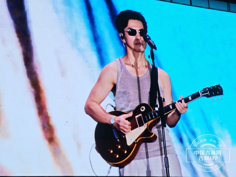 那英演唱最后一曲《梦一场》时,戴着墨镜穿背心的吉他手从后台走出来,现场立刻一阵尖叫,7月12日压轴嘉宾——哈尔滨著名吉他手李健登场了!
