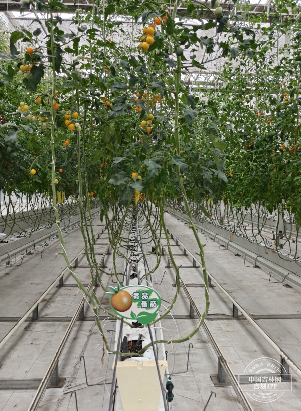 咱们第一站就来到了大名鼎鼎的植物工厂,引进荷兰新型智能温室及无土栽培模式、以色列节水滴灌技术,搭载国际领先的全自动化生产线,是东北地区单体规模最大、科技集成度最高的全自动植物工厂。实现“无土栽培+营养液灌溉”全年不间断生产,培育番茄、水果黄瓜等优质果蔬,年产能达600吨,获GAP(良好农业规范)认证。一进来,一排排小番茄硕果累累。“这个小番茄最长能长到20多米。”技术员陈凤东说,“这里水热光气养能达到最佳的状态,所以能还原出作物最佳的口感和品质。”你可能不知道,2万平方米的植物工厂只有4人打理。这里除了樱桃番茄,还有水果黄瓜,少量彩椒和茄果类作物。旁边就是水产养殖区,悄悄告诉你,这里还养了一种大有来头的鱼,“这个池子里是西伯利亚鲟,高端的鱼子酱来源就是它。”陈凤东说。
