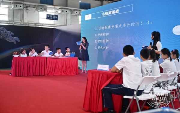 航天知识问题不断抛出,小选手们对答如流。清脆响亮的回答声中,展现的是少年们扎实的知识储备和敏捷的思维反应。