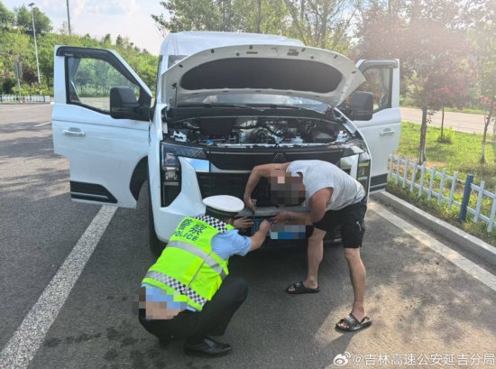 近日,吉林省公安厅交通管理总队高速公路延边支队巡逻六大队民警在执行巡逻任务时,途经寒葱岭服务区,发现一位驾驶员正蹲在车辆牌照位置,似乎在进行着什么操作。民警第一时间怀疑驾驶员可能在拆卸车辆牌照,便迅速前往查看情况。