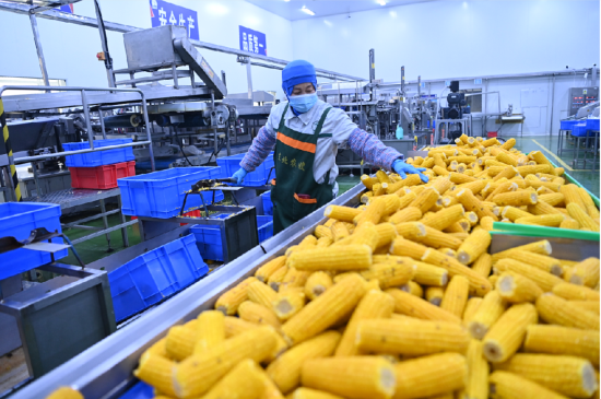 在生产车间,经过清洗、去皮、切段、蒸煮、杀菌等工序,新鲜玉米被加工成即食甜玉米段、玉米汁、玉米淀粉等20多种产品,不仅保质期延长至12个月,附加值也提升了3-5倍。产品通过电商平台发往全国,年销售额突破5亿元,带动周边上千农户增收。