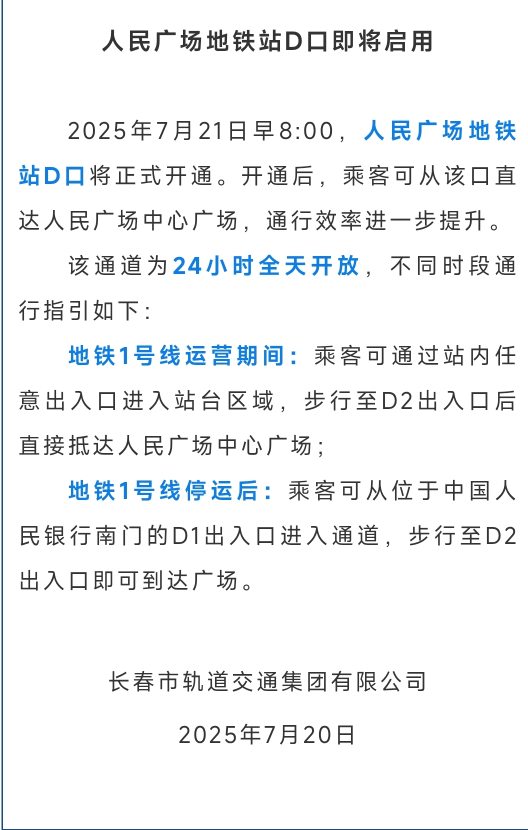 长春人民广场地铁站D口即将启用